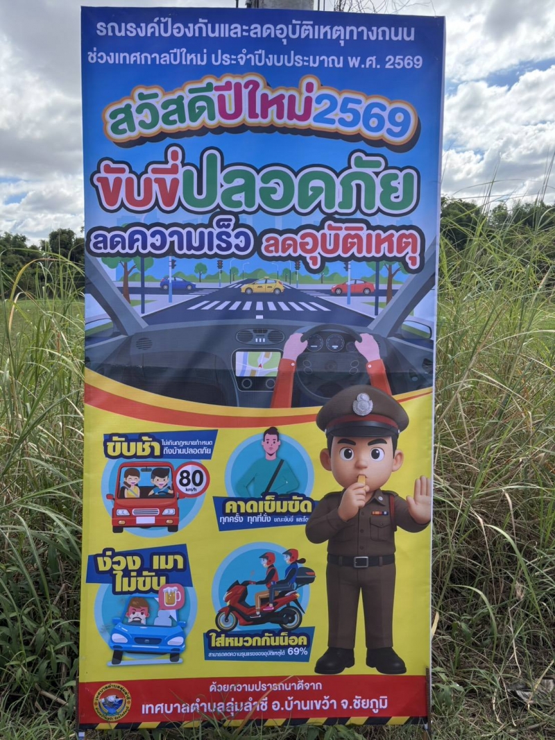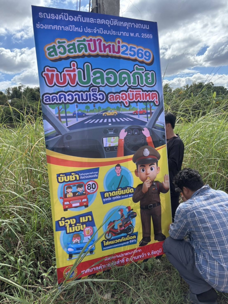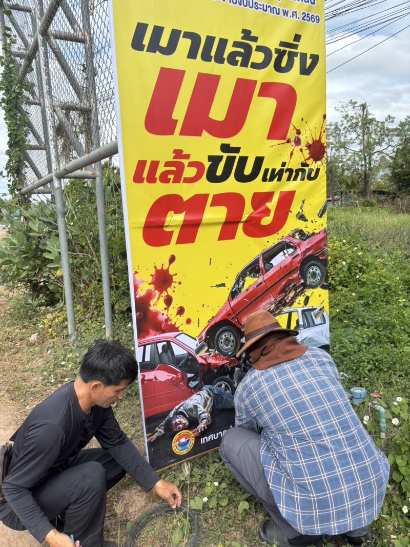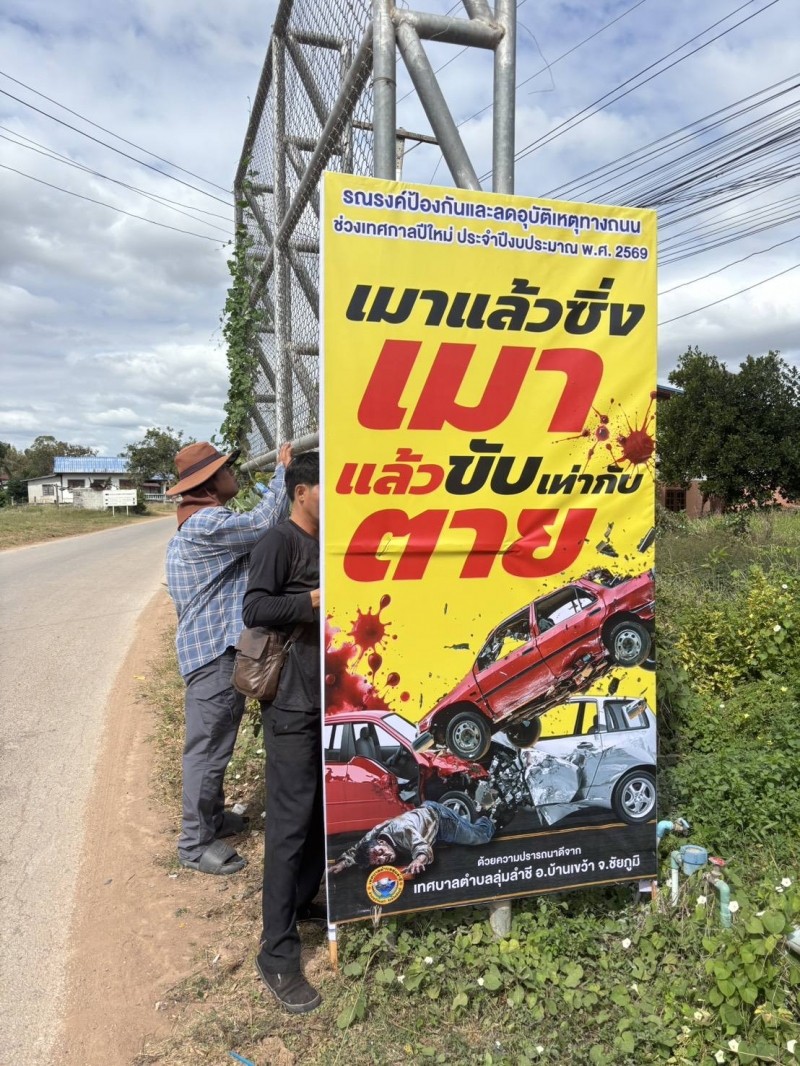 17 ธันวาคม2568 นายธวัชชัย จันทร์เจริญ นายกเทศมนตรีตำบลลุ่มลำชี มอบหมาย งานป้องกันสำนักปลัด ดำเนินงาน ติดตั้งป้ายรณรงค์ป้องกันและลดอุบัติเหตุทางถนนช่วงเทศกาลปีใหม่ 2569 ภายในเขตเทศบาลตำบลลุ่มลำชี