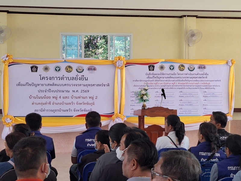 11 กุมภาพันธ์ 2569 นายธวัชชัย จันทร์เจริญ นายกเทศมนตรีตำบลลุ่มลำชี ประธาน ในพิธีเปิดงานบันทึกข้อตกลง ให้ความร่วมมือ โครงการดำเนินงาน ตำบลยั่งยืน เพื่อแก้ไขปัญหายาเสพติด แบบครบวงจร ตามยุทธศาสตร์ ชาติ ดำเนินการโดยสถานีตำรวจภูธร อำเภอบ้านเขว้าโดยมีคณะผู้ บริหาร หัวหน้าส่วนราชการ ตำบลลุ่มลำชี พร้อมด้วยส่วนราชการ ในอำเภอบ้านเขว้า เข้าร่วมพิธีเปิดโครงการ พร้อมบันทึกข้อตกลง mou ความร่วมมือโครงการตำบลยั่งยืนดังกล่าว โดยหมู่บ้านที่เข้าร่วมโครงการ ได้แก่ บ้านโนนน้อยหมู่ที่ 4 บ้านท่าแกหมู่ที่ 2