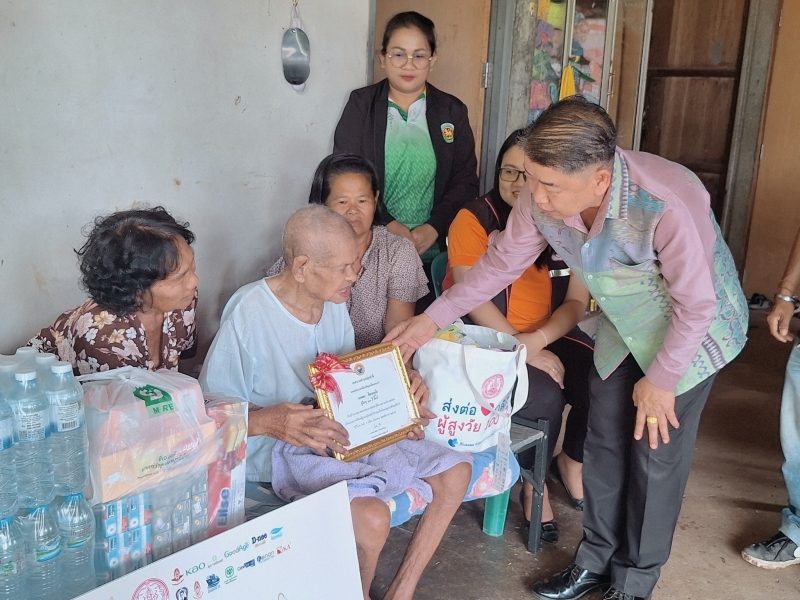 10 กันยายน 2568 เวลา 14.30 น. นายธวัชชัย จันทร์เจริญนายกเทศมนตรีตำบลลุ่มลำชีพร้อมด้วยรองนายกเทศมนตรีพร้อมด้วยคณะผู้บริหาร พร้อมนางสาวนิอร ชาติชนะ ผู้อำนวยการกองสวัสดิการสังคมพร้อมด้วย และเจ้าหน้าที่กองสวัสดิการสังคม เทศบาลตำบลลุ่มลำชี ร่วมกับ สำนักงานพัฒนาสังคมและความมั่นคงของมนุษย์ จังหวัดชัยภูมิ โดยกรมกิจการผู้สูงอายุร่วมมอบเกียรติบัตรผู้สูงอายุ 100 ปีของตำบลลุ่มลำชี พร้อมเครื่องอุปโภค บริโภค ให้กับผู้สูงอายุ ผู้มีอายุ 100 ปี ขึ้นไป ที่ยังมีการดำรวชีวิตอยู่ ร่างกายสุขภาพพลานามัยแข็งแรง ตามโครงการ กิจกรรมส่งต่อกำลังใจผู้สูงวัย 100 ปี ณ บ้านราษฏ์ยางชุม หมู่ที่ 20 ราย นายกอง จิตรบรรเทิง โดยมีคณะผู้นำชุมชน อาสาสมัครหมู่บ้าน ร่วมให้การต้อนรับท่านนายกเทศมนตรีพร้อมคณะ |