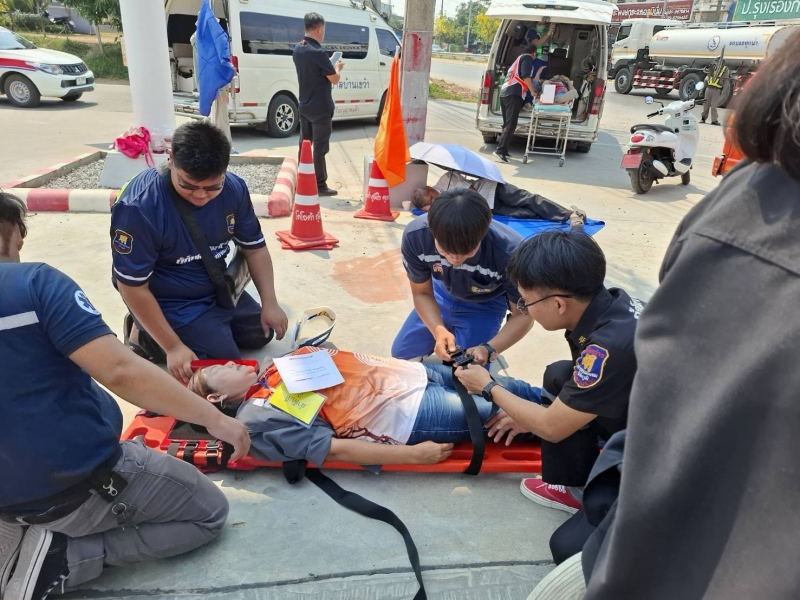 วันที่ 8-9 เมษายน 2569 เวลา13.00 - 16.30 น. นายธวัชชัย จันทร์เจริญ นายกเทศมนตรีตำบลลุ่มลำชี มอบหมายให้กองสาธารณสุขและสิ่งแวดล้อม เข้าร่วมประชุมเชิงปฏิบัติการซ้อมแผนรับอุบัติเหตุกลุ่มชน เพื่อให้เครือข่าย/ทีมงานมีความพร้อมในการรับสถานการณ์อุบัติเหตุกลุ่มชน ลดอัตราการบาดเจ็บและอัตราการตายจากอุบัติเหตุทางถนนและเพิ่มการเข้าถึงการรับบริการของผู้บาดเจ็บ โดยบูรณาการความร่วมมือจากหน่วยงานภาครัฐ ภาคเอกชนและหน่วยงานที่เกี่ยวข้องในพื้นที่ โดยมีผู้เข้าร่วมการประชุมฯ จำนวน 3 คน1.นายวิชัย ผาดี2.นายพันธวัช จำชาติ3.นายพีรปัตย์ กำเนิดเขว้าณ ห้องประชุมชั้น 5 อาคารผู้ป่วยนอก โรงพยาบาลบ้านเขว้า อำเภอบ้านเขว้า จังหวัดชัยภูมิและลงซ้อมแผนสถานที่จริง