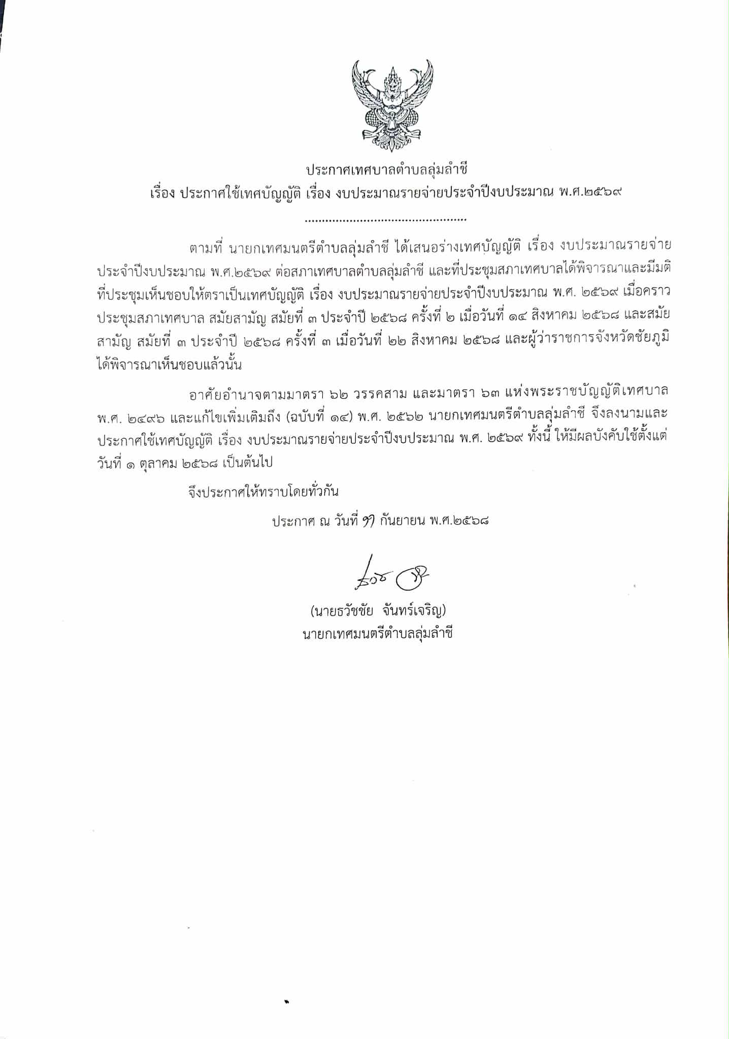 ประกาศใช้เทศบัญญัติ เรื่อง งบประมาณรายจ่ายประจำปีงบประมาร พ.ศ.2569