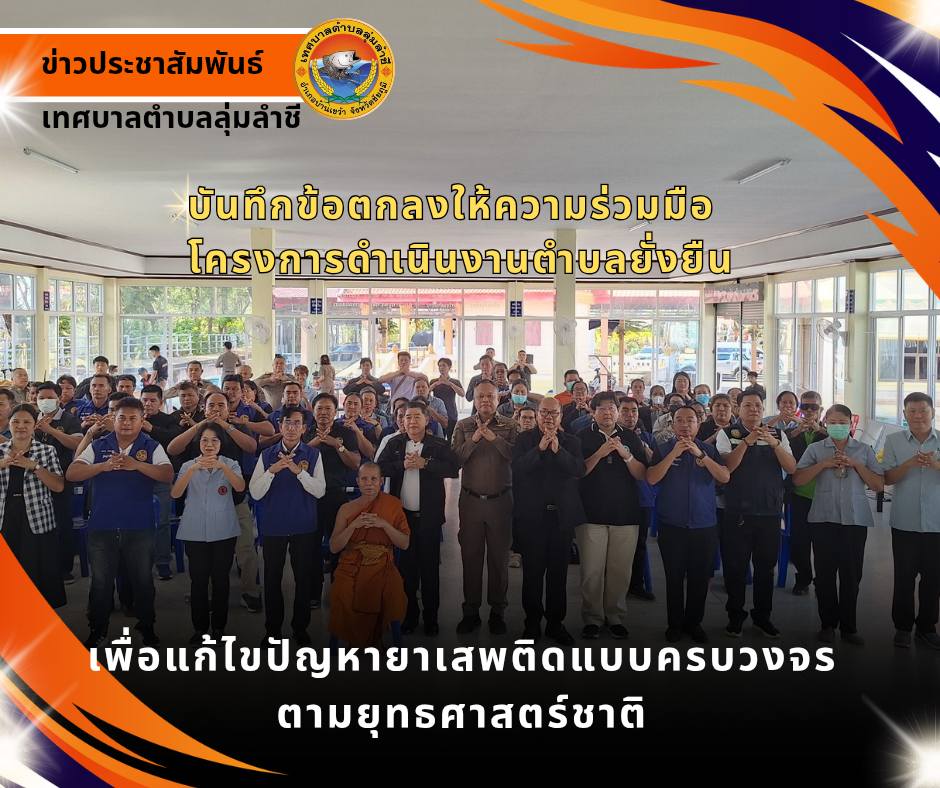 11 กุมภาพันธ์ 2569 นายธวัชชัย จันทร์เจริญ นายกเทศมนตรีตำบลลุ่มลำชี ประธาน ในพิธีเปิดงานบันทึกข้อตกลง ให้ความร่วมมือ โครงการดำเนินงาน ตำบลยั่งยืน เพื่อแก้ไขปัญหายาเสพติด แบบครบวงจร ตามยุทธศาสตร์ ชาติ ดำเนินการโดยสถานีตำรวจภูธร อำเภอบ้านเขว้าโดยมีคณะผู้ บริหาร หัวหน้าส่วนราชการ ตำบลลุ่มลำชี พร้อมด้วยส่วนราชการ ในอำเภอบ้านเขว้า เข้าร่วมพิธีเปิดโครงการ พร้อมบันทึกข้อตกลง mou ความร่วมมือโครงการตำบลยั่งยืนดังกล่าว โดยหมู่บ้านที่เข้าร่วมโครงการ ได้แก่ บ้านโนนน้อยหมู่ที่ 4 บ้านท่าแกหมู่ที่ 2