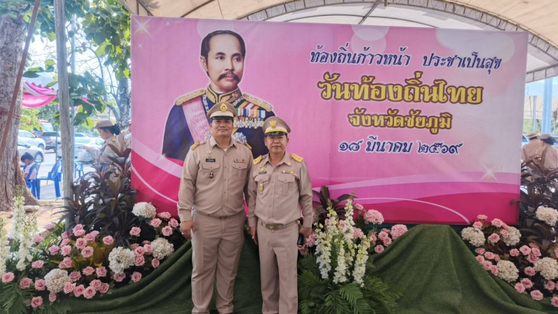 นายธวัชชัย จันทร์เจริญ นายกเทศมนตรีตำบลลุ่มลำชี นายประยงค์ศักดิ์ สิมมะระ หัวหน้าฝ่ายอำนวยการและนายเอกชัย แสงแก้วนักวิเคราะห์นโยบายและแผน ร่วมพิธีวางพานพุ่มดอกไม้สด. “วันท้องถิ่นไทย" เพื่อรำลึกถึงพระมหากรุณาธิคุณแห่งพระบาทสมเด็จพระจุลจอมเกล้าเจ้าอยู่หัว ที่ได้ทรงมีพระบรมราชโองการให้ยกฐานะ ตำบลท่าฉลอมขึ้นเป็นสุขาภิบาลท่าฉลอม เมื่อวันที่ 18 มีนาคม 2448 ถือเป็น “ปฐมบทแห่งการปกครองท้องถิ่นไทย” และเป็นรากฐานการปกครองระบอบประชาธิปไตยในระดับท้องถิ่นโดยเข้าร่วมกิจกรรมดังกล่าว ณ ศาลากลางจังหวัดชัยภูมิ